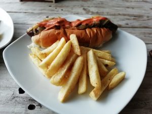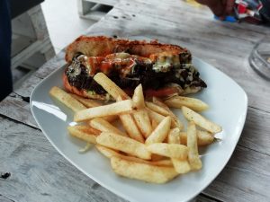Priyen’s steak roll was brimming with fillings – Mushrooms, onions, cheeses, and sauces plus the addition of a side of fries, which definitely matched its long name and price of R 60. It was quite difficult to keep up a conversation with our mouths so full, so we just leaned back and enjoyed Durban’s unbeatable weather. Our waitress was always within sight so there was hardly any waiting on our part.