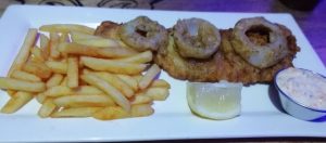 Our food popped up on our table a couple minutes later, and it was as expected. My hake and chips was quite decent with three large onion rings basking on the deep-fried hake. The hake was easy to cut through and pick up with a fork and knife, without leaving bits of flesh or any trace of oil on the plate.