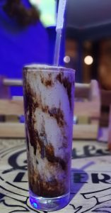 We don’t take to change too well so it was obvious that a burger and beer was going to land in front of one of us. Hops Riverside’s menu is quite expansive, but we knew what we would be eating and drinking because we believe in tradition (or so we would like to think). Our drinks slid onto our table before we could say “beer special!” – A chocolate milkshake for me and an Amstel for Yuven. I would say that my milkshake was not anything to write home about, but was easy to swallow, despite being stirred to suit its price of R25. Yuven’s Amstel was slightly better at R50 for two 500ml draughts.