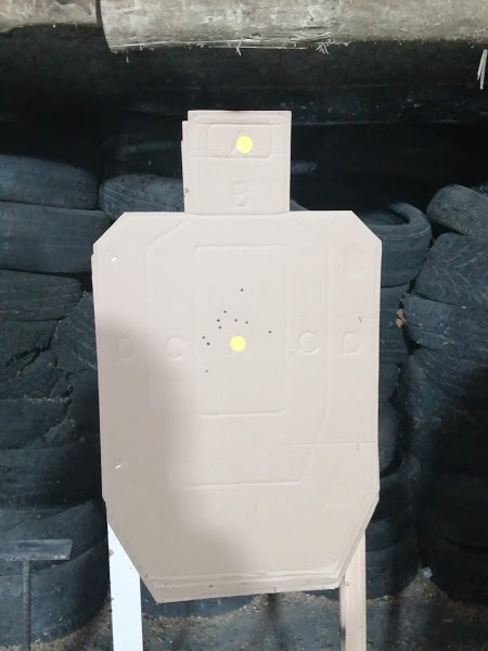 Mo started us off with the Glock 19, and the birthday boy went first. There were 4 targets resembling the upper body of a person lined side by side with little yellow stickers on the head and middle of the chest. We had to each individually aim and fire at the yellow stickers whilst Mo guided us. We began quite close to the targets and progressively moved further away, each time firing at the targets in a specific sequence as instructed by Mo. When we were done he showed us where our bullets had penetrated the target.